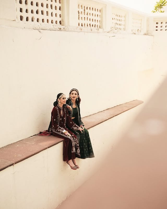 A statement three-piece ensemble in deep bottle green velvet. Includes a fully hand-embroidered jacket, a bralette, and wide-leg palazzo pants with all-over foil print on the bottoms for added sparkle.